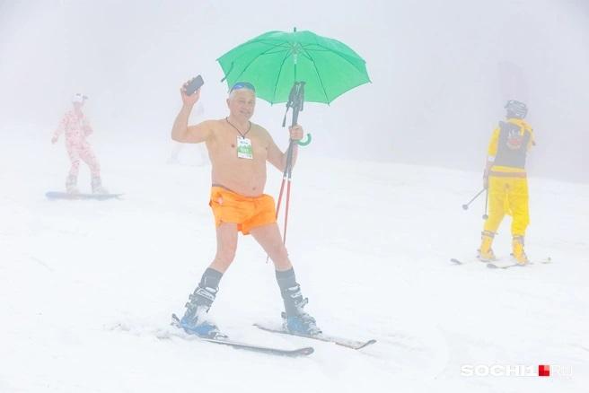 - спуски на лыжах и сноуборде в купальниках и карнавальных костюмах;