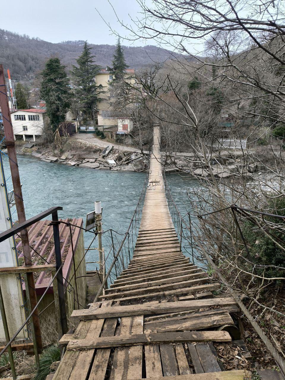 Школьники из села Ахштырь вынуждены преодолевать ветхий подвесной мост по дороге в школу