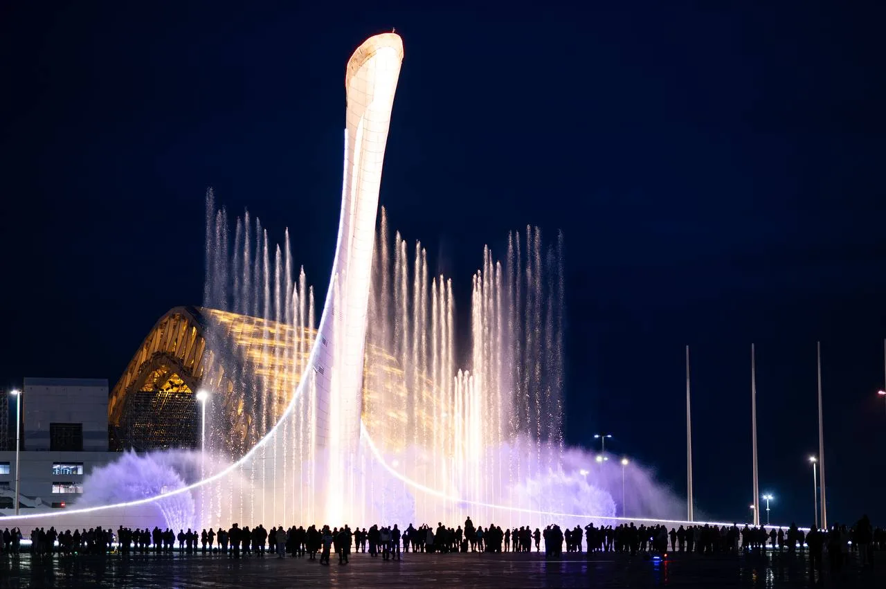 Поющий фонтан считается одной из ключевых достопримечательностей Олимпийского парка в Сочи.