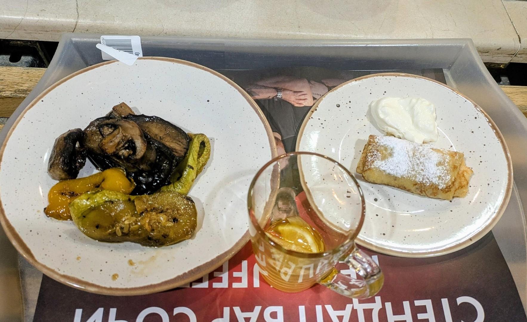 Пример цен в сочинской столовой: овощи, блинчик и чай обошлись в 650 рублей.