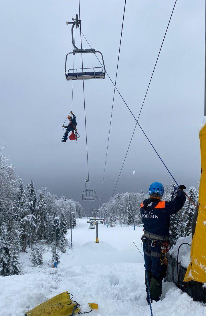 В Сочи на курорте «Газпром Поляна» сотрудники МЧС России провели учебные занятия. Спасатели Южного регионального поисково-спасательного отряда тренировались эвакуировать условных пострадавших с остановившихся кресельных и гондольных подъёмников.