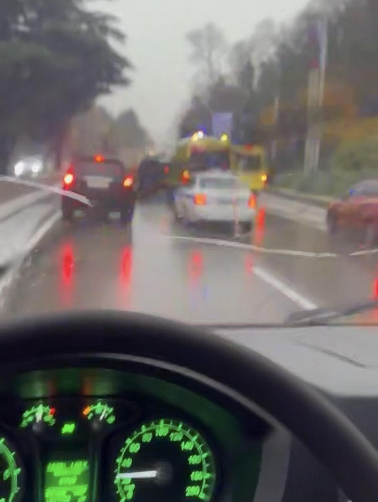 Пробка на автодороге Адлер — Сочи образовалась после того, как легковой автомобиль перевернулся вблизи заправки «Роснефть».