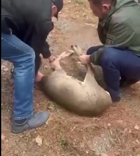 Косулю транспортируют в автомобиле для выпуска в лесной массив