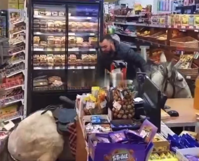 В сочинском поселке Красная Поляна произошел курьезный случай: местный житель верхом на белом коне въехал в продуктовый магазин.