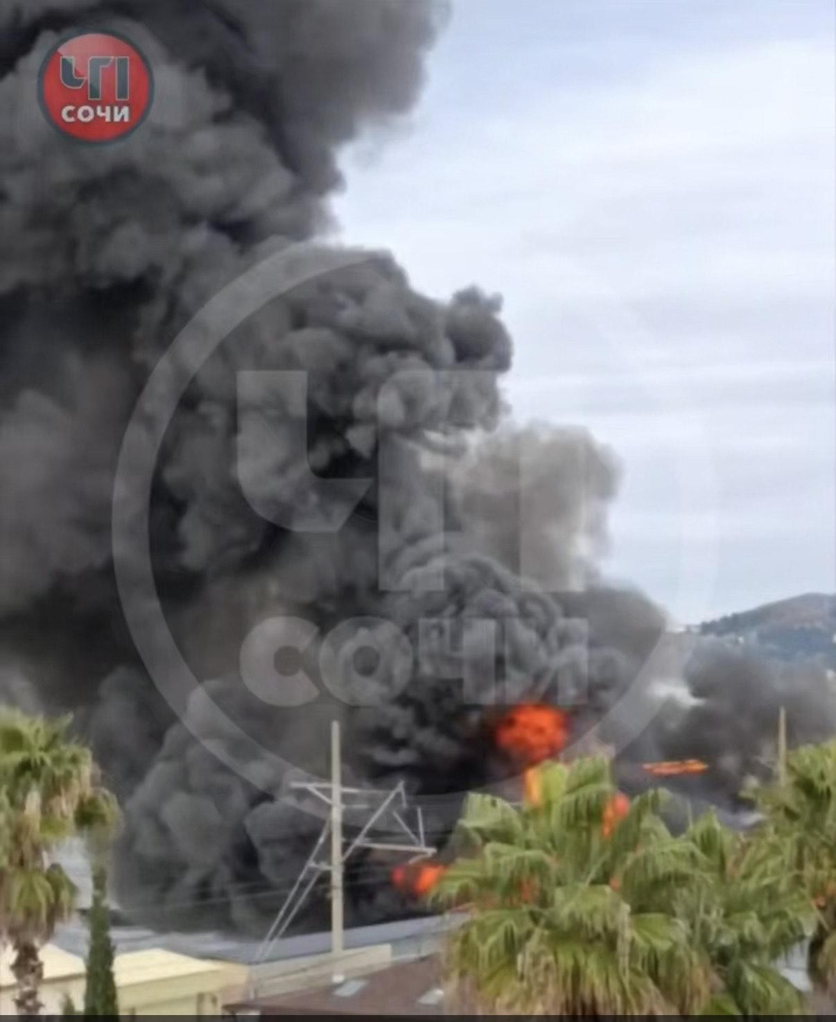 Пожарные расчеты прибыли на место возгорания кафе и склада в Адлере, площадь пожара составила 130 квадратных метров.