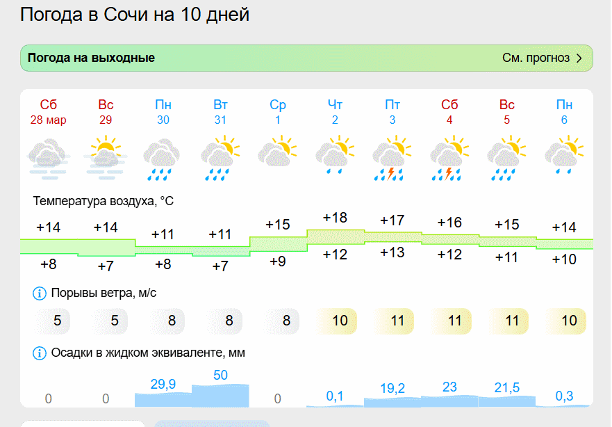В горной местности Сочи, на высотах от 1000 метров, сохраняется вероятность схода лавин, хотя опасность оценивается как слабая. При этом с начала следующей недели курортный регион ожидает период обильных осадков. Телеграм-канал «Погода Сочи» сообщает о предстоящей неделе дождей, что связано с активной циклонической деятельностью. Эти данные согласуются с прогнозом немецкой модели ICON.