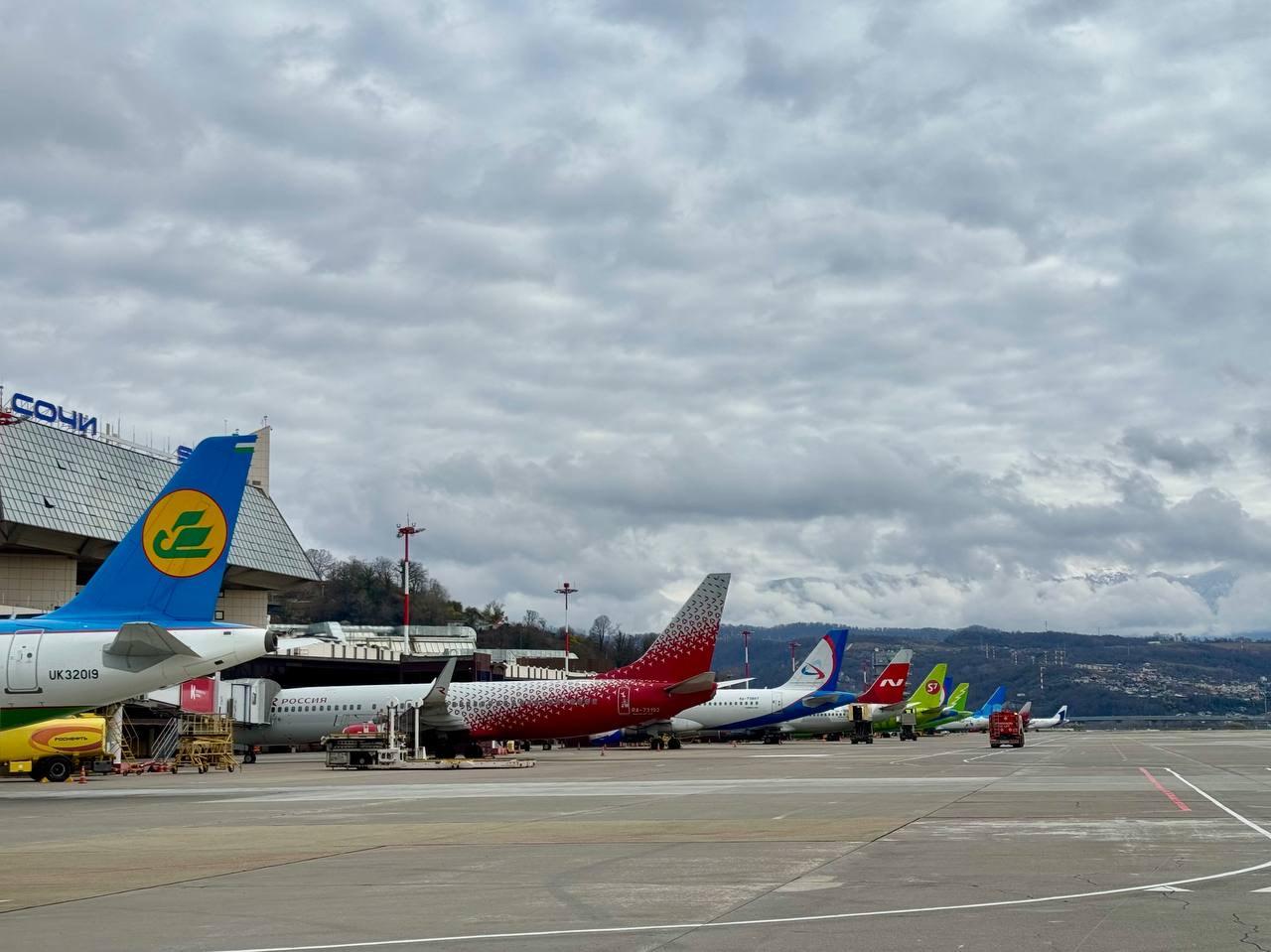 Аэропорт Сочи возобновил работу в усиленном режиме после снятия длительных ограничений, непрерывно обслуживая воздушные суда на прием и вылет.
