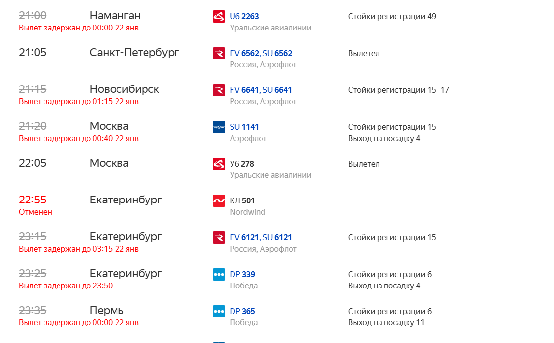 Согласно данным онлайн-табло, десятки рейсов сдвинулись по времени. Ситуацию осложнил предыдущий сбой: в ночь на 21 января работа аэропорта уже приостанавливалась почти на шесть часов, и авиакомпании не успели восстановить нормальное расписание до новых ограничений.