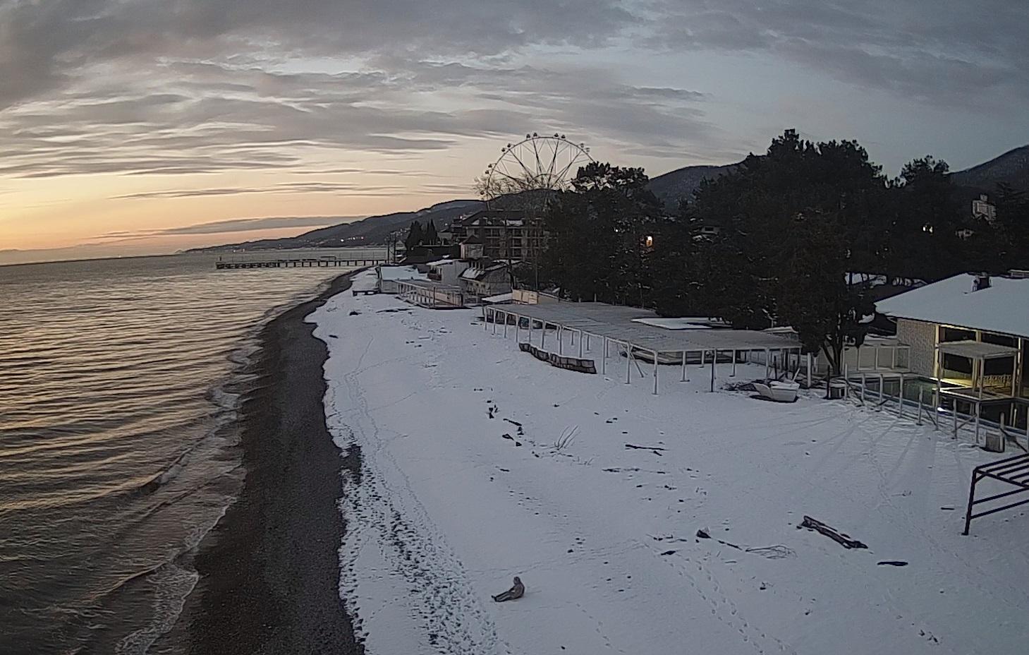 Снег завалил пляжи Лазаревского района в Сочи
