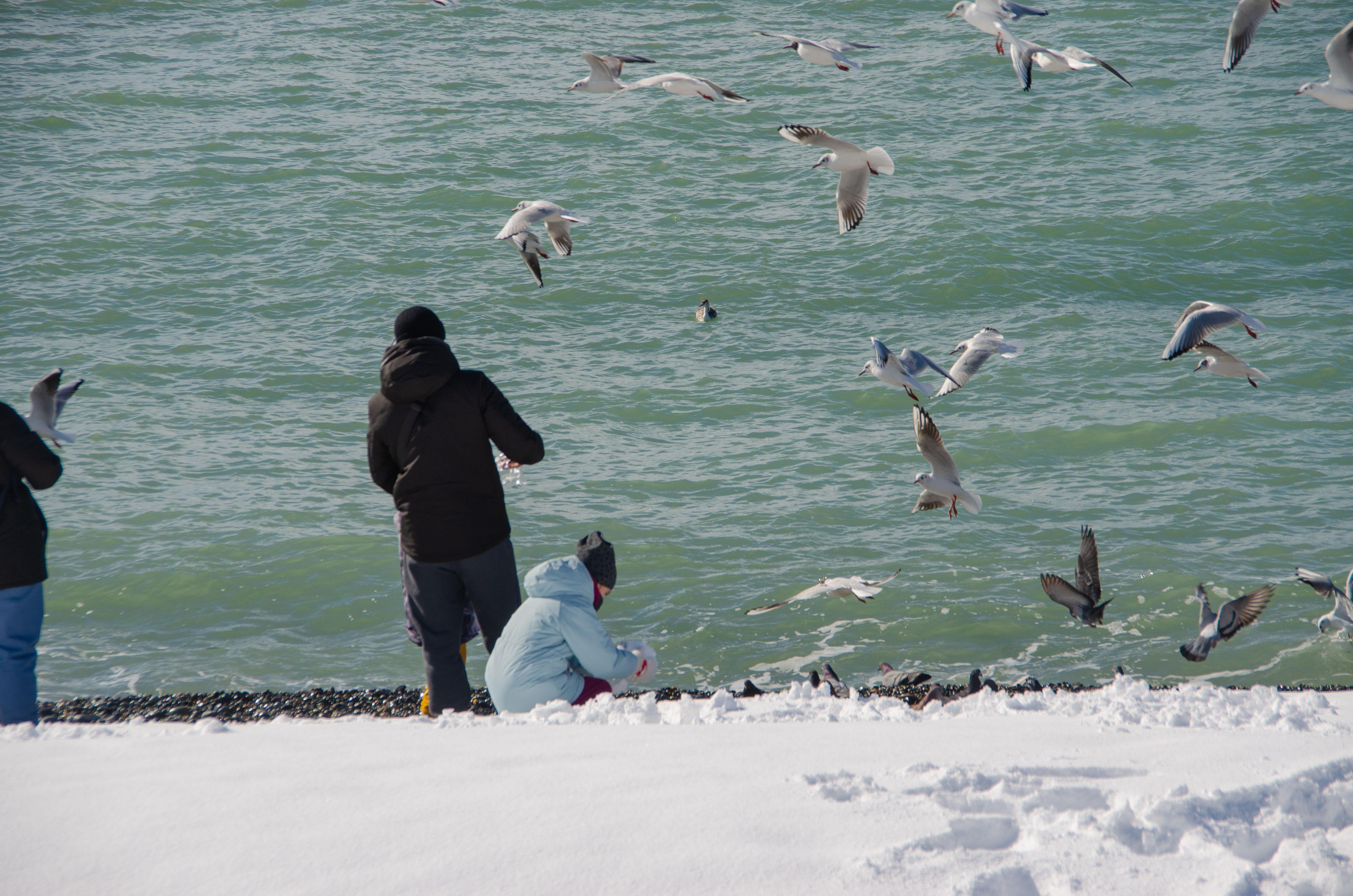 Люди спешат к морскому побережью, чтобы увидеть редкое явление — пляжи, укрытые сугробами.