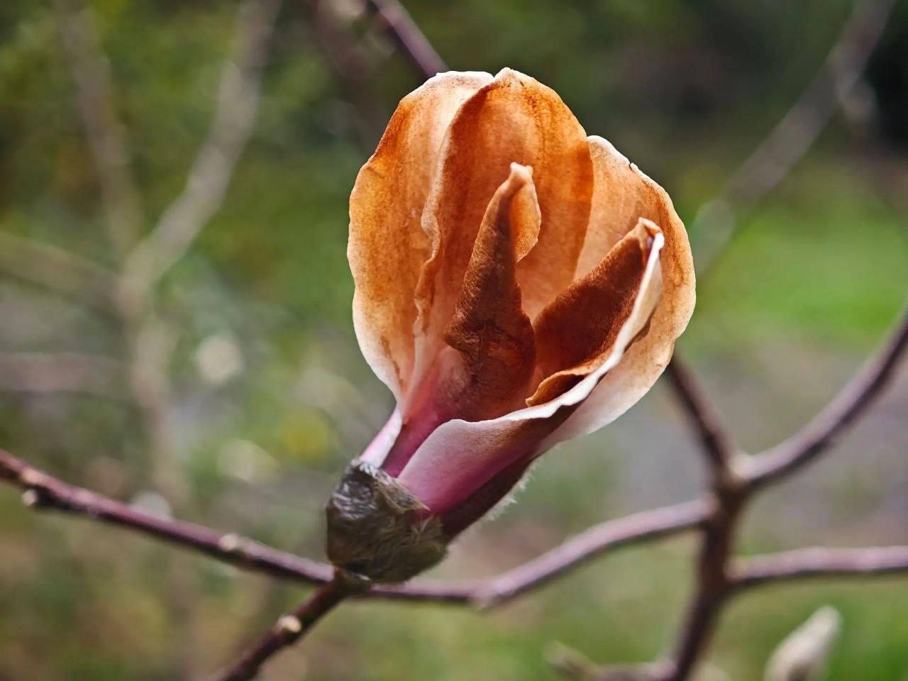 Резкие погодные изменения помешали уникальному цветению. Ночные морозы, последовавшие за потеплением, повредили хрупкие лепестки. Из-за этого они приобрели бронзовый оттенок, а часть бутонов так и не раскрылась.